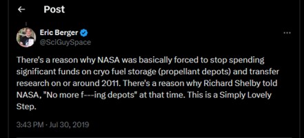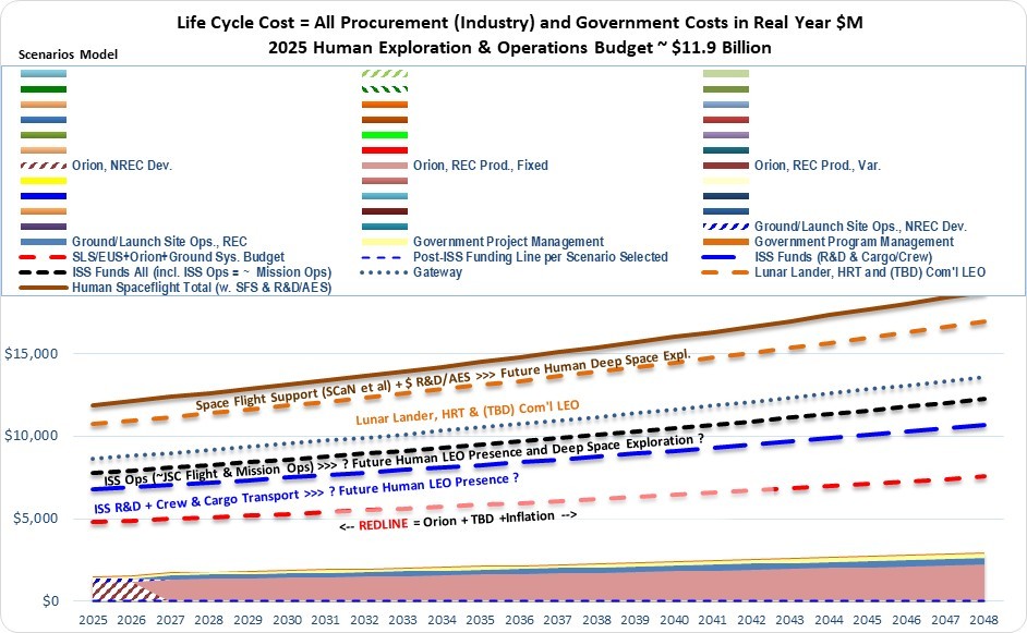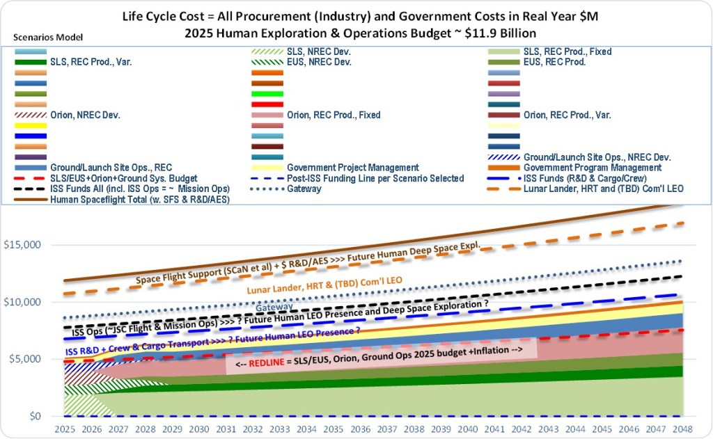 In a last-ditch effort to kill the SLS program in 2011, a small team considered alternatives, mostly about refueling in Earth orbit. They dared to develop plans, budget charts, and so-called “sand charts” that showed the SLS canceled, then other options within the same budget top-line. For this, they were roundly criticized, heads on a stake for some, with a Senator’s florid instructions to NASA – “No more f—ing depots.” A Senator. A Senator not liking that a team* showed budgets and costs did not match the NASA advertising about the Moon, and beyond. It didn’t add up then, and like the plumbing in an old house that needs to be entirely replaced, neglect and now duct-tape do not make it better years later. (*Full disclosure, I was the analyst joining the architectures, costs, and budgets back then.)