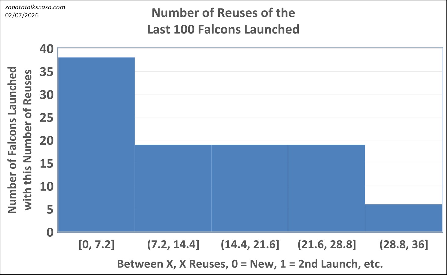 What is this graph above saying? The reuse of most Falcon 9 boosters is “less than” the high twenties. A few boosters have been reused slightly more.